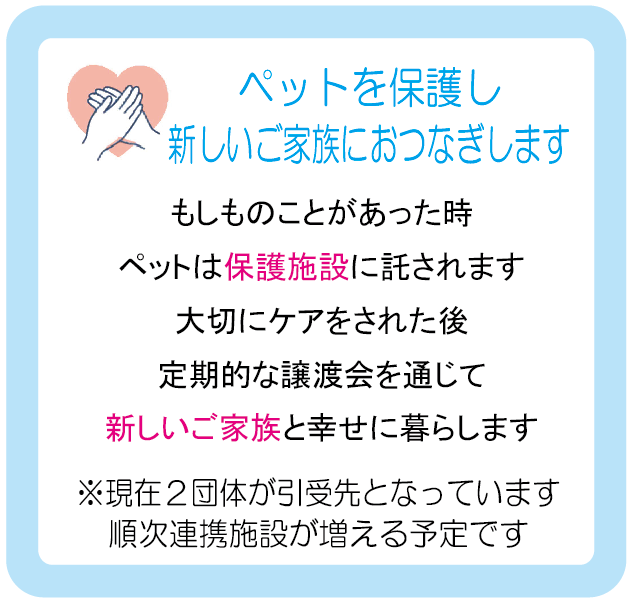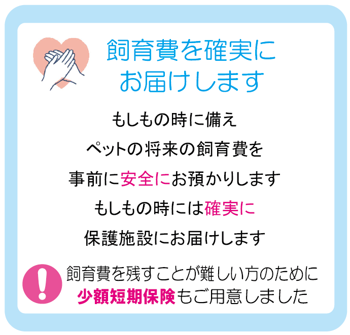 ご高齢の方やおひとりの方が最後までペットを安心して飼える仕組みです